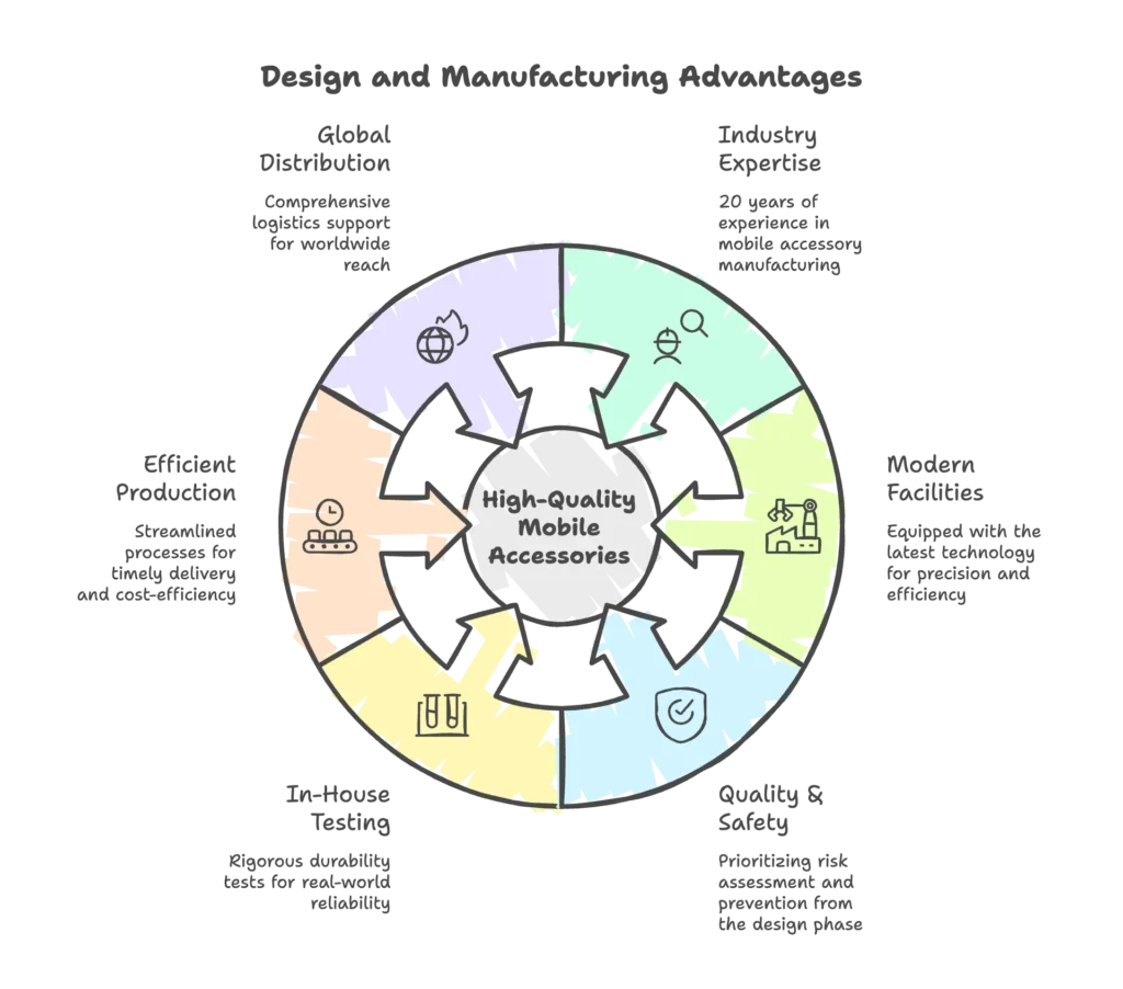 Industry Expertise: With 20 years of extensive experience in mobile accessory design, development and manufacturing, we understand the intricacies of producing high-quality ODM & OEM products. Click here to find out more about our safety-first design capability, and click here to find out more about our product development & prototyping capability.