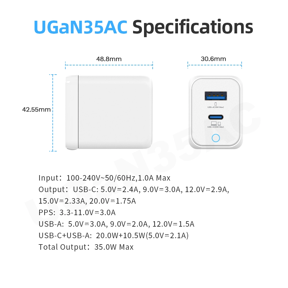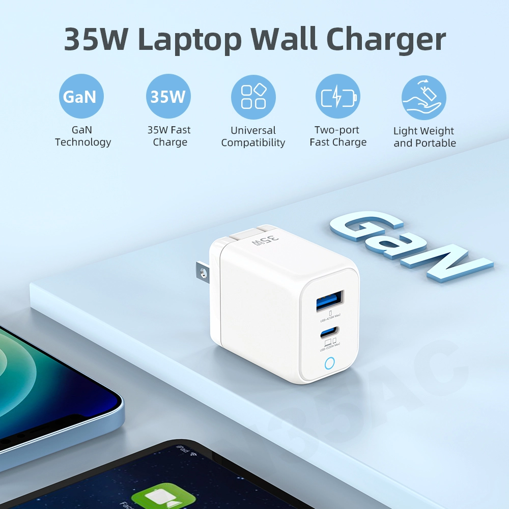 USBANGEL 35W Laptop Charger, 1 USB-C + 1 USB-A Output Ports