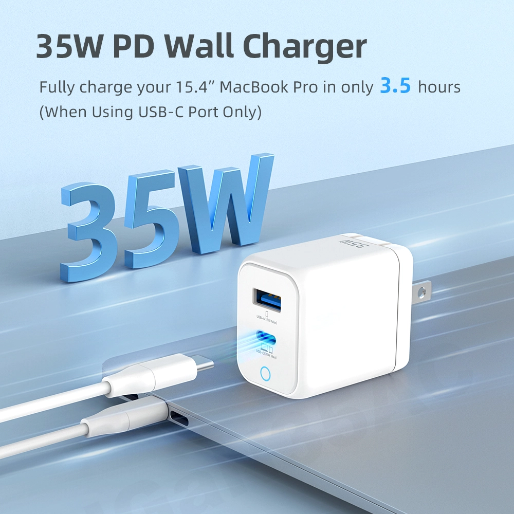 - 35W Power Delivery: This charger pumps out 35 watts of power to take your MacBook Pro 15.4” from 0 to 100% in under 3.5 hours when only one device is connected;