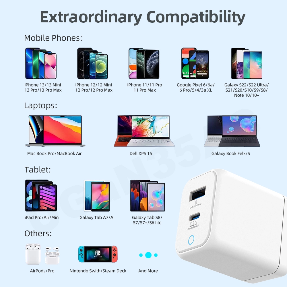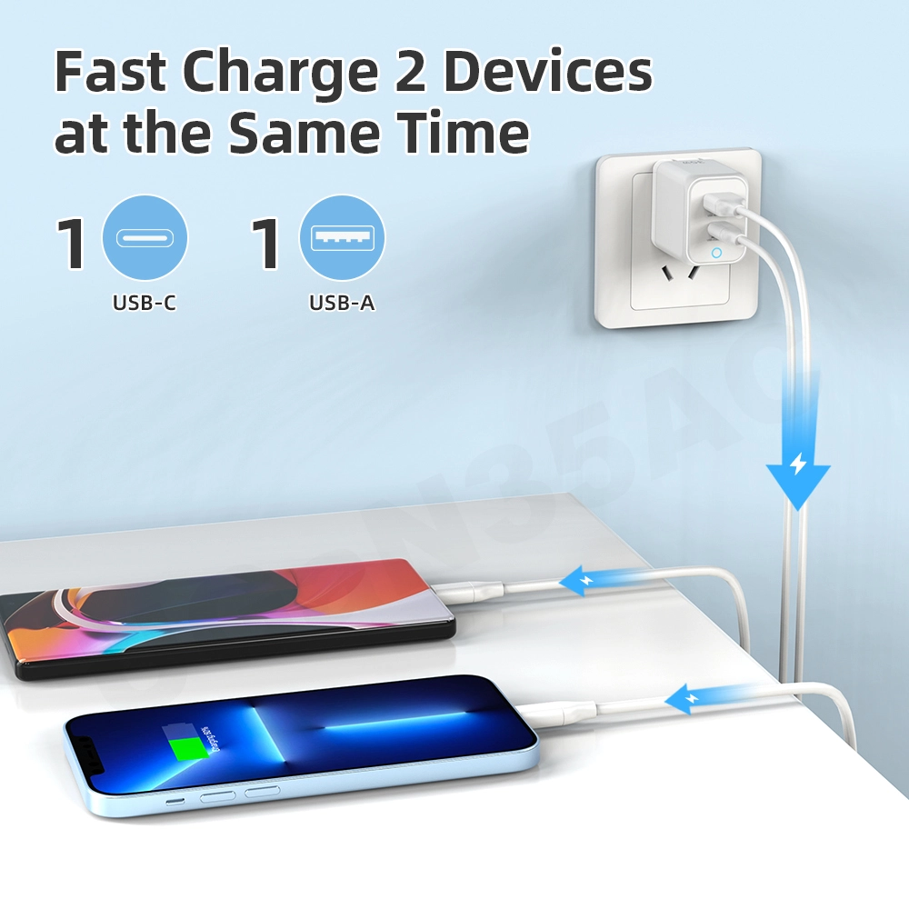 - Extraordinary Compatibility: This 2-port charger supports USB PD 3.0, QC 2.0/3.0, PPS, SCP, and AFC charging protocols. Whether your device is USB-C or USB-A powered, our 2-port USB charger keeps them topped up and ready to go;