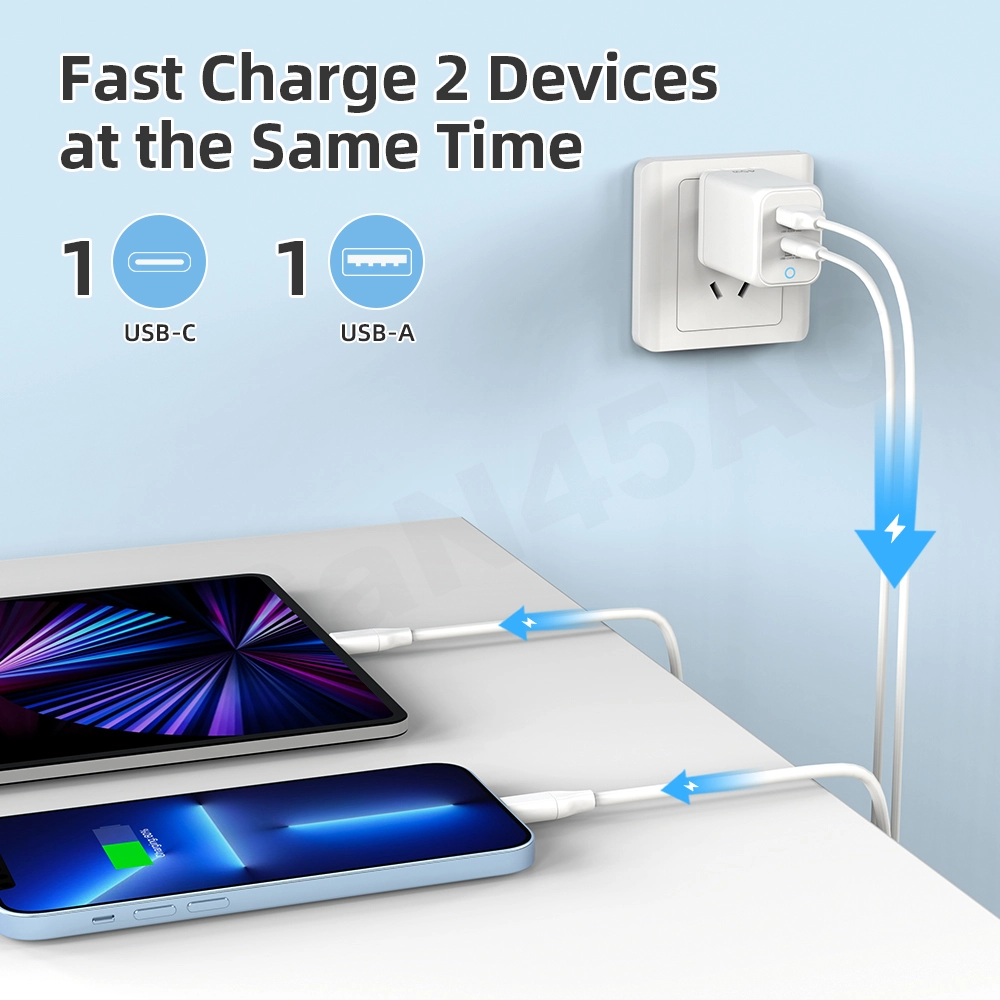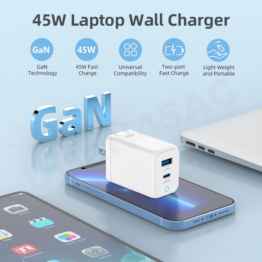 USBANGEL 45W Laptop Charger, 1 USB-C + 1 USB-A Output Ports