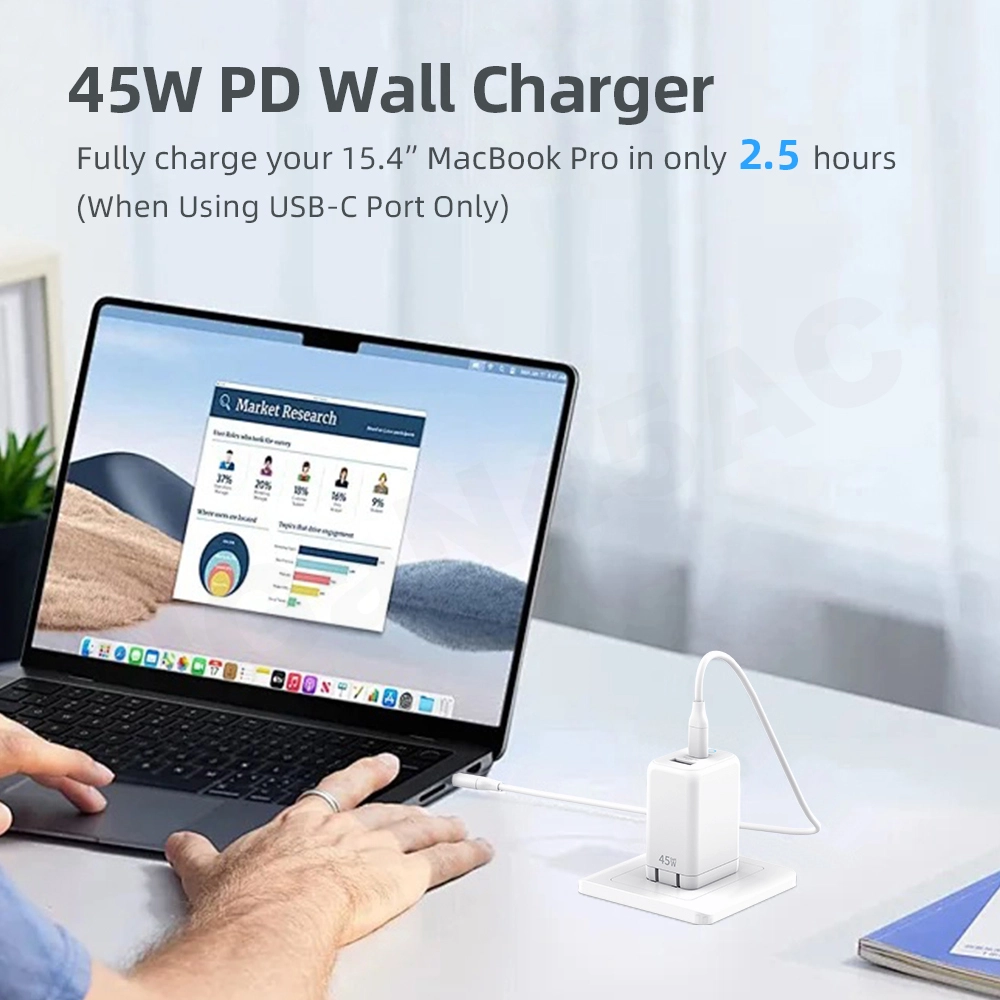 - 45W Power Delivery: This charger pumps out 45 watts of power to take your MacBook Pro 15.4” from 0 to 100% in under 2.5 hours when only one device is connected;